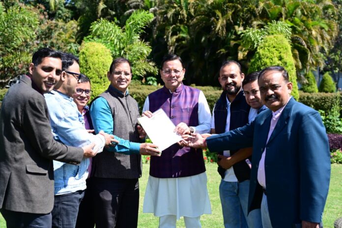 देहरादून। उत्तरांचल प्रेस क्लब के अध्यक्ष अजय राणा के नेतृत्व में प्रेस क्लब के पदाधिकारियों ने प्रदेश के मुख्यमंत्री पुष्कर सिंह धामी से शिष्टाचार भेंट की। इस दौरान पत्रकारों के हितों एवं प्रेस क्लब भवन के निर्माण से जुड़े महत्वपूर्ण मुद्दों पर विस्तार से चर्चा की गई।