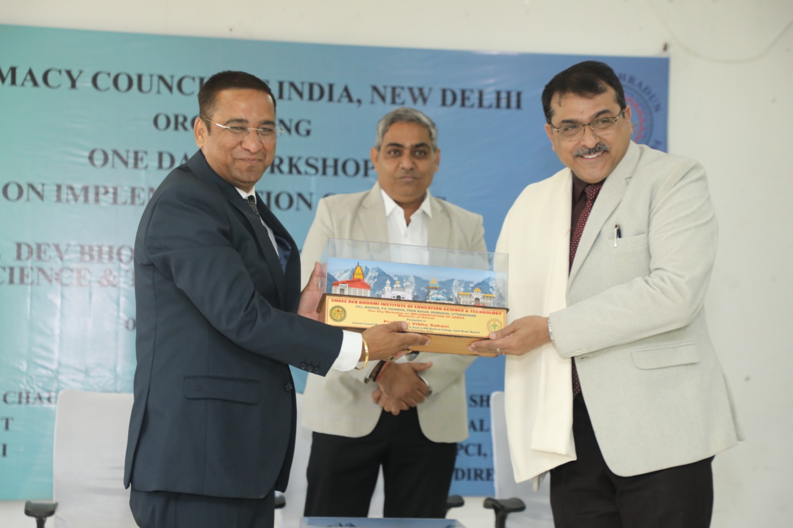 देहरादून।। श्री देव भूमि इंस्टीट्यूट ऑफ एजुकेशन साईंस एण्ड टैक्नोलॉजी, पौंधा में “Implementation of AEBAS” एक दिवसीय कार्यशाला का आयोजन किया गया। कार्यशाला में मुख्य अतिथि के रूप में जस्सुभाई हीराभाई चौधरी, उपाध्यक्ष, भारतीय भेषजी परिषद (Pharmacy Council of India) नई दिल्ली और डॉ. विभु साहनी, सेंट्रल काउंसिल मेंबर फार्मेसी काउंसिल ऑफ इंडिया, नई दिल्ली एवं अध्यक्ष फाइनेंस कमेटी पीसीआई, नई दिल्ली एवं विभागाध्यक्ष एलएलआरएम मेडिकल कॉलेज, मेरठ और डॉ शिवानंद पाटिल, सेंट्रल काउंसिल मेंबर पीसीआई, नई दिल्ली एवं संस्थान के अध्यक्ष श्रीनिवास नौटियाल द्वारा सर्वप्रथम दीप प्रज्ज्वलित कर कार्यक्रम का शुभारम्भ किया गया।