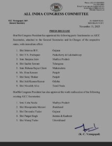 महर्षि ने बताया जिला और शहर कांग्रेस के अध्यक्षों की सूची भी जारी कर दी गई है।