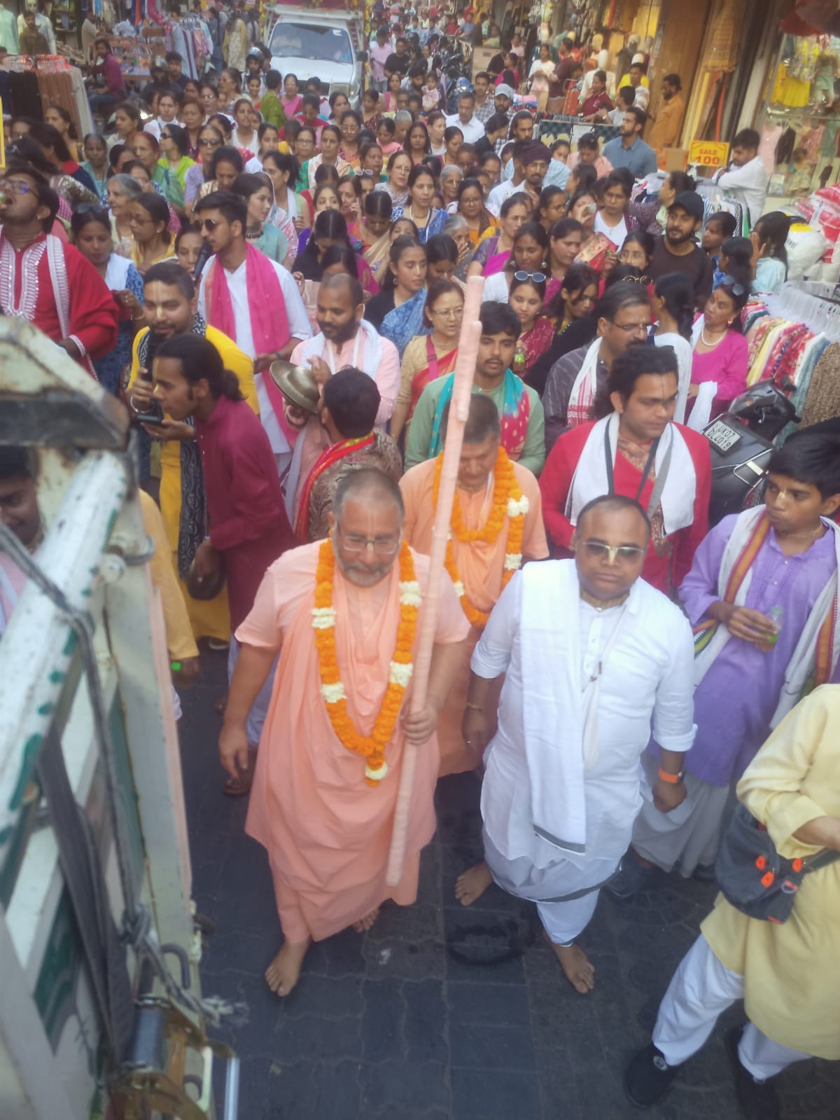 लॉर्ड वेंकटेश्वर वेडिंग पॉइंट पहुंचे। वहां अखिल भारतीय श्री चैतन्य गौड़ीय मठ के आचार्य स्वामी विष्णु प्रसाद ने संतों और श्रद्धालु संग प्रार्थना सभा की। इसके पश्चात ‘ हरे कृष्ण ‘ महामंत्र के उद्घोष के साथ नगर संकीर्तन प्रारंभ हो गया।
